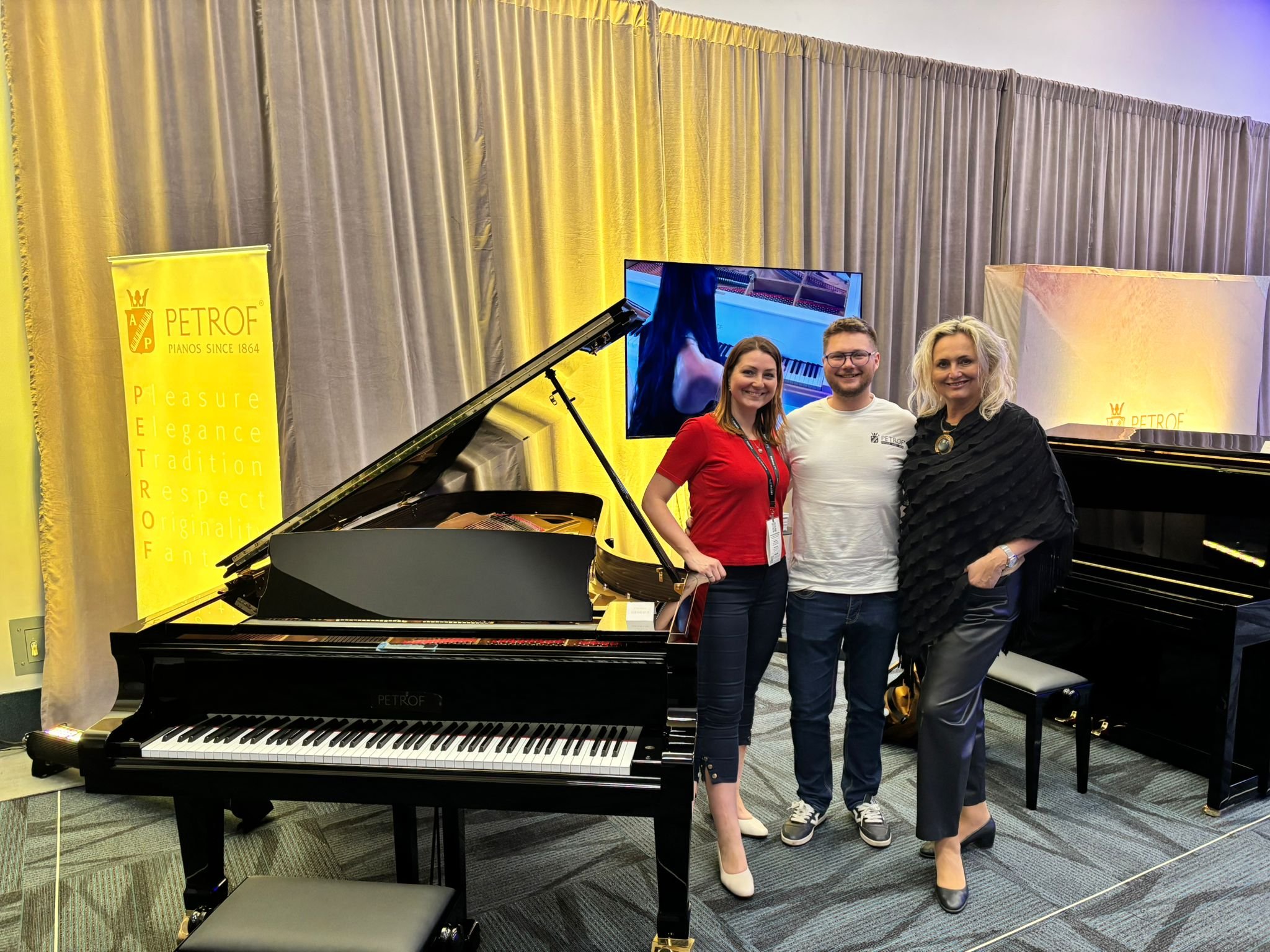 展示のハイライトは、当社最長のコンサートグランドピアノP 284 Mistralでした。私たちにとってNAMMは単なる楽器の展示会ではなく、何よりも人と人とのつながりの場です。ブースには数多くのパートナーをお迎えし、伝統的なBecherovkaを片手に、アメリカの中心でチェコの職人技を祝えたことを大変光栄に思います。